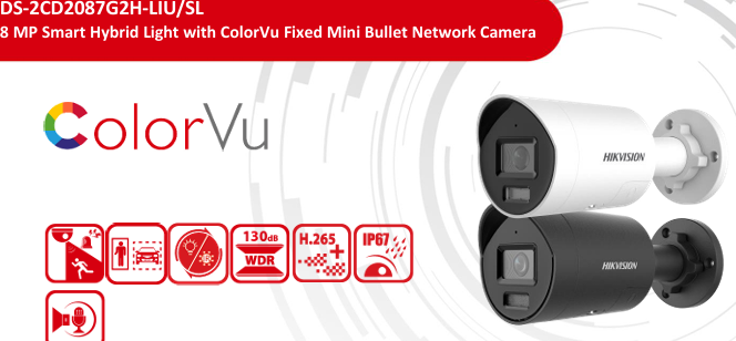 Hikvision DS-2CD2087G2H-LIU/SL 2.8MM Pro Series 8MP Smart Hybrid Light with ColorVu Fixed Mini Bullet IP Camera 2.8mm Lens White